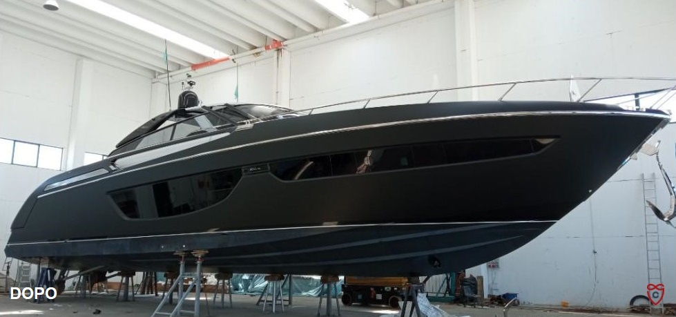 Nella fase successiva, il lavoro si è concentrato sulla parte esterna dello yacht, scafo e cabina di pilotaggio, che al contrario dell’interno, da un bianco si è scelto di passare ad un nero opaco “racing”: