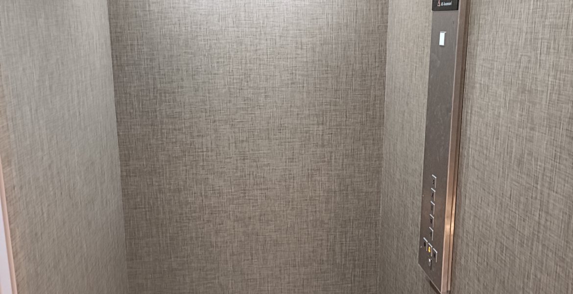 Questa cabina lift a Lugano è stata rivestita con una finitura effetto tessuto donandole eleganza e modernità.