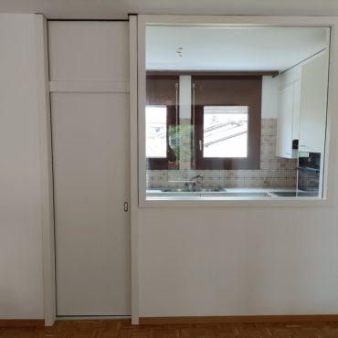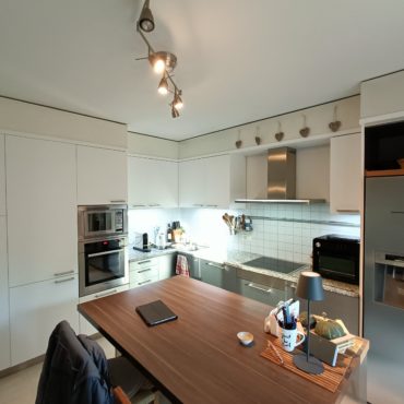 Rivestimento cucina con ante in legno lavorato a Le Mont-sur Lausanne