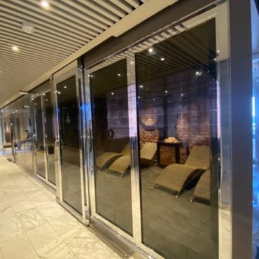 Wrapping refit area pubblica di una nave da crociera Grimaldi